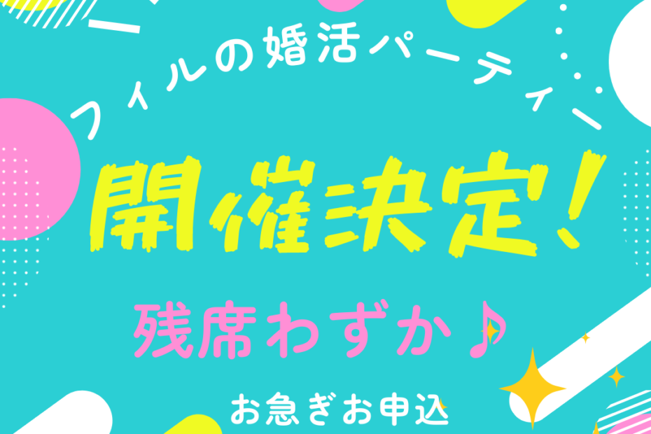 【長崎】★満員御礼★ フィル*7/12(土)大人のカフェ・パートナーコン 47~59歳 投稿者: 副島亮子 2025年7月12日 2025年7月10日 2025年07月12日 (土) @ 3:00 PM – 5:45 PM –
