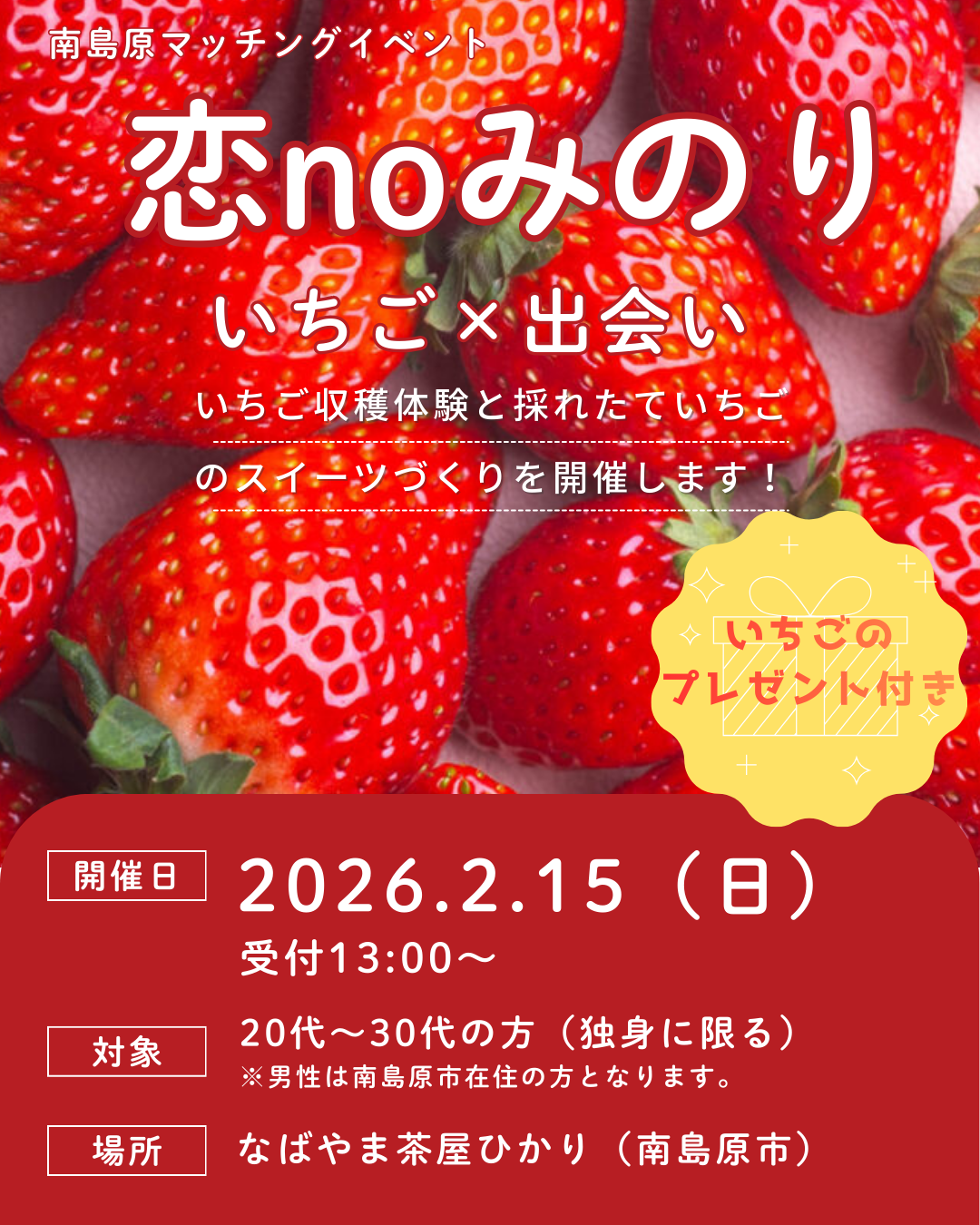 ◆対象者 〈男性〉恋愛・結婚に前向きな独身の方(南島原市在住者に限る)