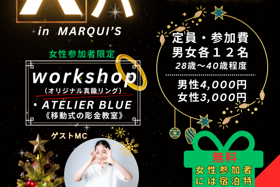 【南島原】12/6(土)Xパ * クリスマスパーティー *女性申込枠あと少し! 投稿者: 松永裕介 2025年12月6日 2025年11月26日 2025年12月06日 (土) @ 4:30 PM – 9:00 PM –